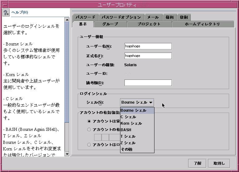 Defaultではcsになっているのだと思いますが、Linuxに慣れ浸しんだ筆者には・・どうにも使い辛いのでShellを変更しようと思います。passwdファイルを編集して・・っと思いましたが、またまた管理コンソールを開いてみました。ユーザーアカウントを開いて自分のアカウントを開いてみると、おぉ〜。。いろいろ有ります。これからやりたい事を考えるとgroupファイルを編集してあーだこーだと考えていましたが全てここから編集できそうです。 とりあえずShellの変更をやってみました。選んだのはBASH、いつから有効なのかターミナルを閉じて開きなおしても有効になりませんでしたがログインしなおしたらBASHに変わっていました。 コンソールでカーソルキーが使えて安心しました。 |